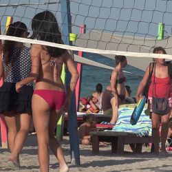 This hot teen volleyball girl’s cameltoe will show you that it doesn’t even have to be a nude beach to see nudity. With a little bit of voyeurism, you can see a hot pussy here and there, even on a regular public beach. There is hundreds of people around this sweet girl and you can be certain that a lot of men noticed her pussy bulging out and her cameltoe forming inside her red bikini.